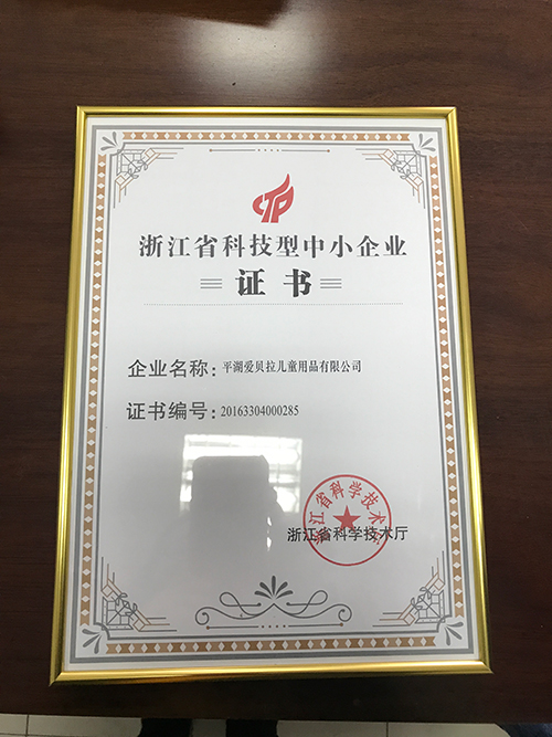 Certificate of small and medium-sized technology-based enterprises in Zhejiang Province
